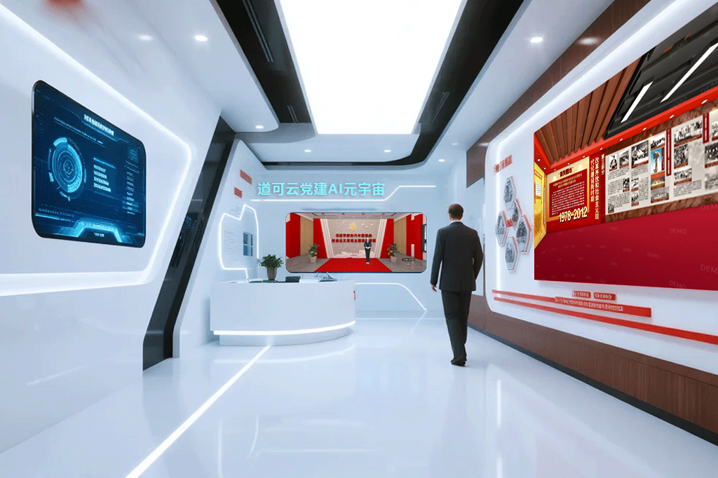 打造了集党建宣传、党员教育、学习考评、数据统计分析、党建云展厅等主要功能于一体的党建元宇宙学习平台,内容涵盖四史学习教育、党员主题教育、习近平系列讲话等各维度;通过沉浸式VR互动体验设备、数字化个性化内容定制、线上小程序和学习平台开发等技术,规划建设线下主题教育展馆、党建中心、党建活动,为党建展馆科技赋能。